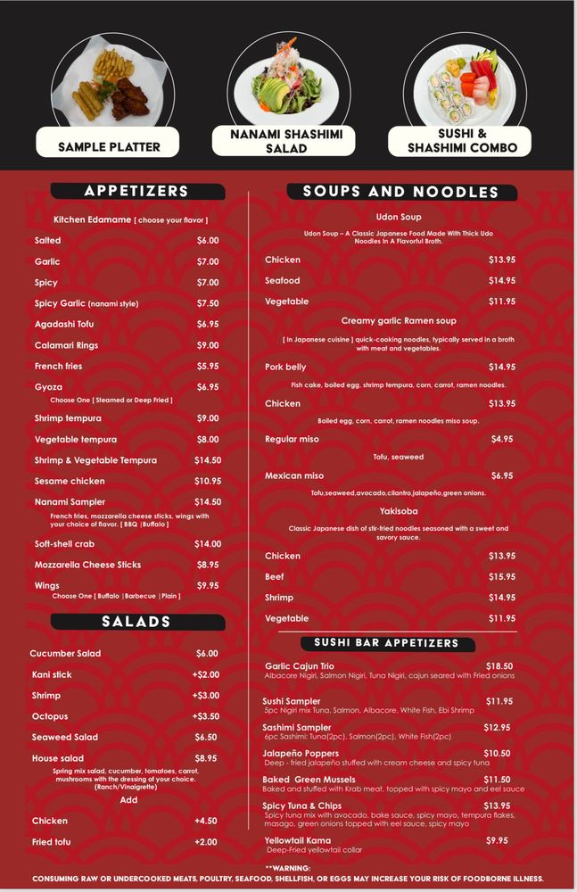 Nanami Sushi in Hemet, CA, offers a diverse menu of Japanese cuisine with a focus on sushi and desserts. Customers rave about the flavorful Diablo and Crunch rolls, as well as the delicious Langostino sushi. The restaurant provides a comfortable dining experience with options for takeout, delivery, and reservations. The friendly staff, led by owner Cesar and Poncho, are praised for their exceptional service. Diners can enjoy a variety of dishes, including poke bowls, ramen, sashimi, and teriyaki beef. The cozy yet stylish ambiance, along with the top-notch customer service, makes Nanami Sushi a must-visit spot for sushi lovers in the area. The restaurant's commitment to quality and satisfaction truly shines through in every dish served.